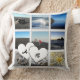 Monogrammed in een dubbel hart heeft de werpkussens ruimte voor 9 vierkante foto's uit Nieuw-Zeeland of instagram foto's om de sjabloon van de kussen aan te passen ter nagedachtenis van een speciale vakantie of vakantie op huwelijksreis. De gekleurde achtergrond kan worden gewijzigd door de bewerkknop rechts te volgen.