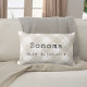 Show je liefde voor je woonplaats of huidige stad met onze aangepaste coördinaten lumbar en kussen. Onze neutrale ivoorcrème en witte gebuffelloed voor Sonoma, Californië, hebben uw stadsnaam en lengte- en breedtegraad in de schrijftypemachine met houtskool. Voer de plaatsnaam en de coördinaten in met behulp van de opgegeven velden. Maakt een doordacht cadeau voor het huishouden voor nieuwe huiseigenaars!