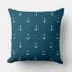 Gooi kussen wordt getoond in een marine en witte kleur met een ankerprint. Pas dit object aan of koop het object zoals het is.