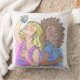 Gooi een kussen met twee jonge meisjes besties genieten van hun parfum.