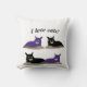 Het ontwerp show twee paar blauwe en zwarte katten op de voorkant van de kussen; op de achterkant van de kussen zie je één paar katten - één zwart en één blauw. Aan de voorkant staan de woorden "Ik hou van katten". U kunt de kussen eenvoudig aanpassen door deze woorden te vervangen door uw eigen tekst. Dit is de ideale kussen voor iedereen die van katten houdt (en wie niet?)