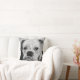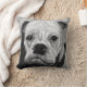 Dit unieke zwart-wit designer kussen shows de hoofden van een witte stier. Het afbeelding op dit kussen is gebaseerd op een schilderij met de titel "Boo the Bulldog".