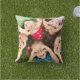 Buitenwerpkussen wordt getoond in met een schattige kinder speelfoto print. Pas dit kussen aan en verander naar je eigen foto of koop zoals het is.