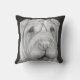 Dit unieke zwart-wit designer kussen shows de hoofden van een Chinees Shar-Pei hondje. Het afbeelding op dit kussen is gebaseerd op een schilderij met de titel " Sharpei".