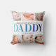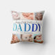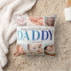 Elegant 1st vaders dag kussen met het gezegde "gelukkige eerste vaderdag", 6 foto's die je moet vervangen door je eigen, en de kindernaam.
