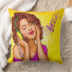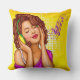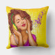 Drog kussen met een pop illustratie van een jonge vrouw in hoofdtelefoons die muziek beluisteren met gesloten ogen.