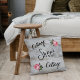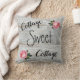 Dit Sierkussen Cottage is voorzien van de tekst Cottage Sweet Cottage op een faux witte achtergrond van hout met roze rozen. Ideaal voor uw Cottage of Decor.
