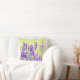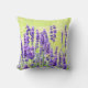 Gooi de kussen met afbeelding lavenderbloemen tegen een bleek gele achtergrond aan de voorzijde en met een lavender achtergrond op de achterkant.