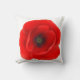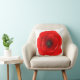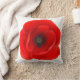 Dit werpen kussen wordt getoond met een witte achtergrondkleur en heeft het rode papaverbloemdrukontwerp.
