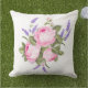 Deze kussen met een accent in de openlucht worden getoond met een mooie roze pony bloemen en lavendel. Color White past dit object aan of koopt zoals het is. StockAfbeelding freepik.com