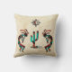 Dit is een uniek 'Een van de soorten' zuidwest Sierkussen! Het is voorzien van twee Southwest Kokopelli die de Flute en Dansend rond een Cactus onder de zon op...Een Sandstone-achtergrond! Dit is een Origineel Kunstontwerp van Artist Kerry Miller.
