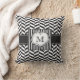 Zwarte Herringbone gooit kussen. Monogram sjabloon.
