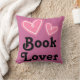 Kute kussen voor een boekenliefhebber in je boekgroep hart logo.