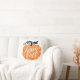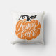 Deze kussen van de boerderijstijl voorzien van een pompoenontwerp met de woorden "Happy Herfst". Op de achterkant zie je een zwart-wit patroon.