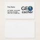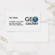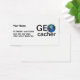 This geoching card design says The O is image of an earth with flags on it, like flags where you've found caches. Add your custom name or geocaching signature or handle in the template to personalize the cards. Click customize to change the font style or color or background color Show off your love of this family-friendly activity. Use these cards to trade with other geocachers you meet at events on the trail. More geocaching shirts and swag at Geocache Stuff.