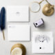 Ce design simple et élégant de deux licornes blanches se faisant face contre un arrière - plan blanc propre