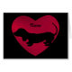 Une silhouette de chien d'un teckel à un coeur rouge. Personnalisez cette carte commémorative d'animal familier avec le nom du chien et changez en lui. Employez cette silhouette de colley pour une carte de sympathie de chien, un cadeau commémoratif de chien ou un cadeau de chien au propriétaire. Une partie des pattes à la paix <a href=http://www.zazzle.com/collections/pet_loss_sympathy_cards_wrapping_tissue_paper-119518548059434098>Cartes de sympathie de perte d'animal familier - emballage et collection de papier de soie de soie</a>