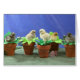 Photographie de poulets adorables en soie de bébé assis dans des pots de fleurs.