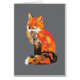 Een artistieke tekening van een rode vos met een grijze masculine achtergrond