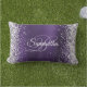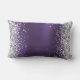 Faux sparkly Silver Glitter-randen met een faux satin ombre donkerviolet paars design. U kunt de fancy calligrafiestijlen en -kleuren aanpassen. De shine, de sparken en de glittereffecten worden gecreeerd met een gedrukt digitaal afbeelding. Een girale lumbale kussen voor haar onderdekstoel.