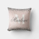 Elegant Silver Glitter op een Monogrammed de Folie van de Blush Roze gooit kussen met een klantgerichte grijze kalligrafiemanusnaam en een gewaagde monogram sjabloon. Een schattige accentuil voor een meisjesslaapkamer of studentenkamer.