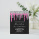Silver Hot Pink Glitter Drip Quinceañera Invite