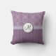 Silver op Lavender Damask met Stripes & Monogram Kussen