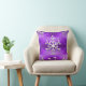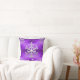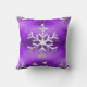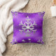 Een kleurrijk en feestelijk paars kerstkussen met een grote, zilveren sneeuwvlok in het midden, met andere sneeuwvlokken, witte sterren en sparken rond de randen. De levendige paarse achtergrond is een zeer opvallend paars gradiëntpatroon.