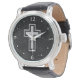 Silver Tone Christelijk Cross op Black Sparkle Horloge