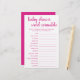 Débrouillez les mots de bébé ! Un baby shower simple ou un genre dévoilent un jeu de partie de course de mots (avec les réponses ci-dessous) avec un script amusant et décontracté écrit à la main. Le design classique comprend une superposition de la typographie de citation à la main moderne. Pour d'autres couleurs ou produits correspondants, veuillez visiter le magasin JustFharryn Zazzle, ou contacter le concepteur, c/o Fharryn@yahoo.com Tous droits réservés. #bohochic #zazzlemade TOUCHE DE RÉPONSE : Bib, Play Pen, Rattle, Berceau, Shampooing, Porte bébé, Couverture, Un côté, Sac de couches, Poussette, Moniteur de bébé, Lullaby, Pacifier, Bouteille