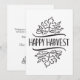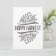 Thanksgiving wenskaart met de woorden "Happy Harvest" met handgetekende bladeren. Voeg je eigen bericht aan de achterkant toe.