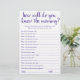 "Connais-Tu Bien Maman ?" Qui connaît le mieux la future mère ? Un simple baby shower de gardien ou de genre révèle un jeu de fête avec un script amusant et décontracté écrit à la main. Le design classique comprend une superposition de la typographie de citation à la main moderne. Pour d'autres couleurs ou produits correspondants, veuillez visiter le magasin JustFharryn Zazzle, ou contacter le concepteur, c/o Fharryn@yahoo.com Tous droits réservés. #bohochic #zazzlemade"
