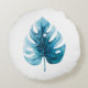Simple Elegance Waterverf Blue Monstera Leaf Rond Kussen