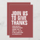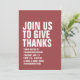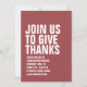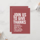 Avec une typographie blanche audacieuse, cette invitation à dîner Thanksgiving mauve est facilement customisée et donne le ton pour une fête de dinde amusante et décontractée