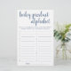 "Alphabet Race Baby Product Game" Eenvoudig baby shower of gender onthullen partij ABC race spel kaart met een leuke, casual hand-lettered script. Het klassieke ontwerp bevat een moderne handgeschreven citaat typografie overlay. Voor andere kleuren of bijpassende producten, bezoek de JustFharryn Zazzle winkel, of neem contact op met de ontwerper, c/o Fharryn@yahoo.com Alle rechten voorbehouden. #bohochic #zazzlemade