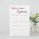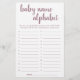 "ABC Race Baby Name Game" Eenvoudig baby shower of gender onthullen partij alfabet race game kaart met een leuke, casual hand-lettered script. Het klassieke ontwerp bevat een moderne handgeschreven citaat typografie overlay. Voor andere kleuren of bijpassende producten, bezoek de JustFharryn Zazzle winkel, of neem contact op met de ontwerper, c/o Fharryn@yahoo.com Alle rechten voorbehouden. #bohochic #zazzlemade