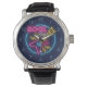 Dit is een zeer koude, gesimuleerde rots neon Sign Against Brick Wall Wrist Watch