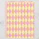 Dit plakboek papier heeft een geel, roze en oranje argyle patroon op de voorkant en oranje strepen op de achterkant. Het is leuk voor de lente papier ambachten of junk journaling, en het is goed voor het maken van gelaagde cadeau labels of wenskaarten, of voor scrapbooking. Je kunt het ook gebruiken voor poppenhuisbehang.