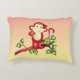 Voici un coussin d'accent adorable avec un singe rouge sucré et une longue queue de curling sur une branche d'arbre entourée de feuilles verts.