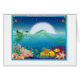 Une belle sirène flotte paisiblement sous une pleine lune, avec un plein océan de la vie sous elle