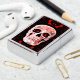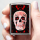 De saai van het hoofd van de schedel maakt de moderne cultuur koel lichter. Creepy, rood zwart, helder, kwaad, macaber, spooky Halloween geïnspireerd design. Afbeelding copyright Marg Seregelyi Fotografie.