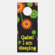 Op de ene kant staat "Rustig, ik slaap" en op de andere kant staat "klop alsjeblieft".
