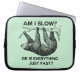 Ben ik traag? Of is alles gewoon snel? - Funny Sloth illustration design on a branch. Verander de achtergrond in de kleur van uw keus.