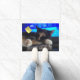 Het originele kunstwerk van ZoeSPEAK op deze deurmat begon met een originele foto van een kat die voor een televisie slaapt. De kat is een calico, met witte poten die naar de camera komen. Een programma over financiën is op tv, met een helderblauwe afbeelding met de woorden "VENTURE CAPITAL FUNDING". Onder de kat, die haar interesse in financiële zaken toont, staan de woorden "VENTURE CATIPALIST", in tekst met een kattenbontpatroon en een blauwe gloed erachter, zoals de blauwe gloed achter de kattenbont aan de randen. Er is een gele post het met het woord "Welkom" op, ingesteld voor u te personaliseren of te verwijderen als u wilt.