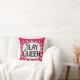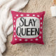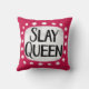 Een leuk en schattig typografisch ontwerp dat "Slay Queen" zegt. Het is zwarte tekst op een witte rechthoek met funky, speelse witte stippen eromheen, allemaal op een hete roze magenta achtergrond.