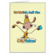 De bovenste helft van een koe steekt uit de grond alsof ze in een gat is gevallen en ze heeft haar voorpoten omhoog terwijl ze een koffiekopje in één hoef vasthoudt. Het woordje 'play' zegt: "Wie is slechts de helft van de cafeïne!" Origineel ontwerp van Christie Black van Creations from the Heart.