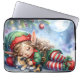 Sleeping Christmas Elf with Calico Kitten Laptop Sleeve