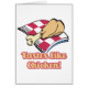 Bekijk dit coole retro ontwerp. Door Dooni Design. Een gefrituurde kip drumstick op een picknick deken met gezegde: Tastes als kip. Wees er zeker van dat je aan het lachen bent met dit grappige ontwerp!