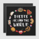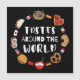Culinaire reis rond het wereldbol. Van pizza tot sushi, dit kunstwerk combineert iconische gerechten uit verschillende landen. Perfect voor foodies en reisliefhebbers.