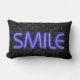 Verlichtde muur in de stad met een smalle tekst in paarse neonverlichting.